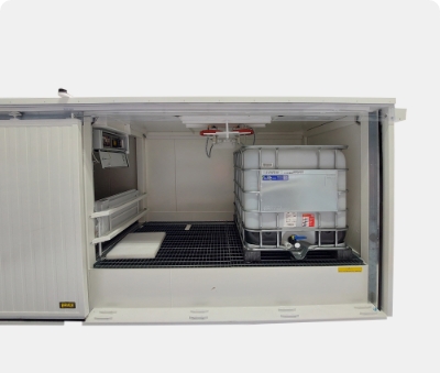 Diese Systeme liefern wir mit Behältergrößen bis zu je 1000 l. Eine Kombination aus Ver- und Entsorgung in einem gemeinsamen System ist ebenfalls möglich.