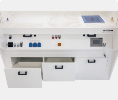 Alle Geräte sind bereits in unserem Reinraum getestet, sodass die Prozesstische komplett durchinstalliert bei unseren Kunden angeliefert werden und nur noch mit den bauseitigen Anschlüssen für die Ver- und Entsorgung zu verbinden sind.